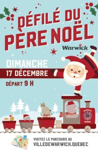 Les lutins voyageurs nous ont informé que le Père Noël sera à Warwick le dimanche 17 décembre prochain pour participer à notre défilé de Noël!