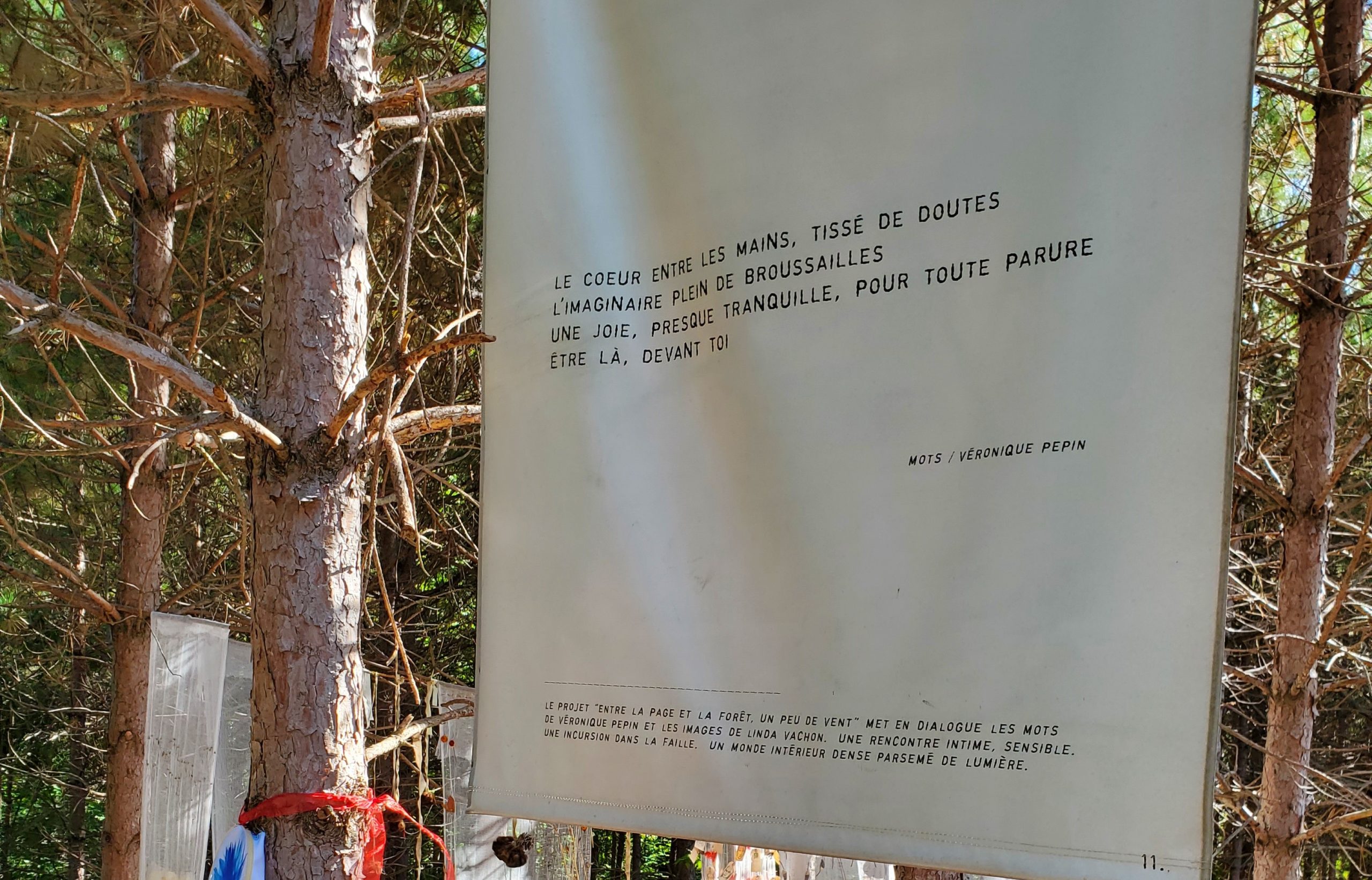 Ce sont les textes de Johannie Demers, Stéphanie Déziel, Chantal Garand, Isabelle Gentès, François Giguère, Mélanie Grenier, Jean-Guy Lachance, Louis Laforce, Jacinthe Lavoie, David Leblanc, Maureen Martineau, Véronique Pepin et Monique T. Giroux qui seront exposés en pleine nature. L’exposition se poursuivra jusqu’au 16 octobre.