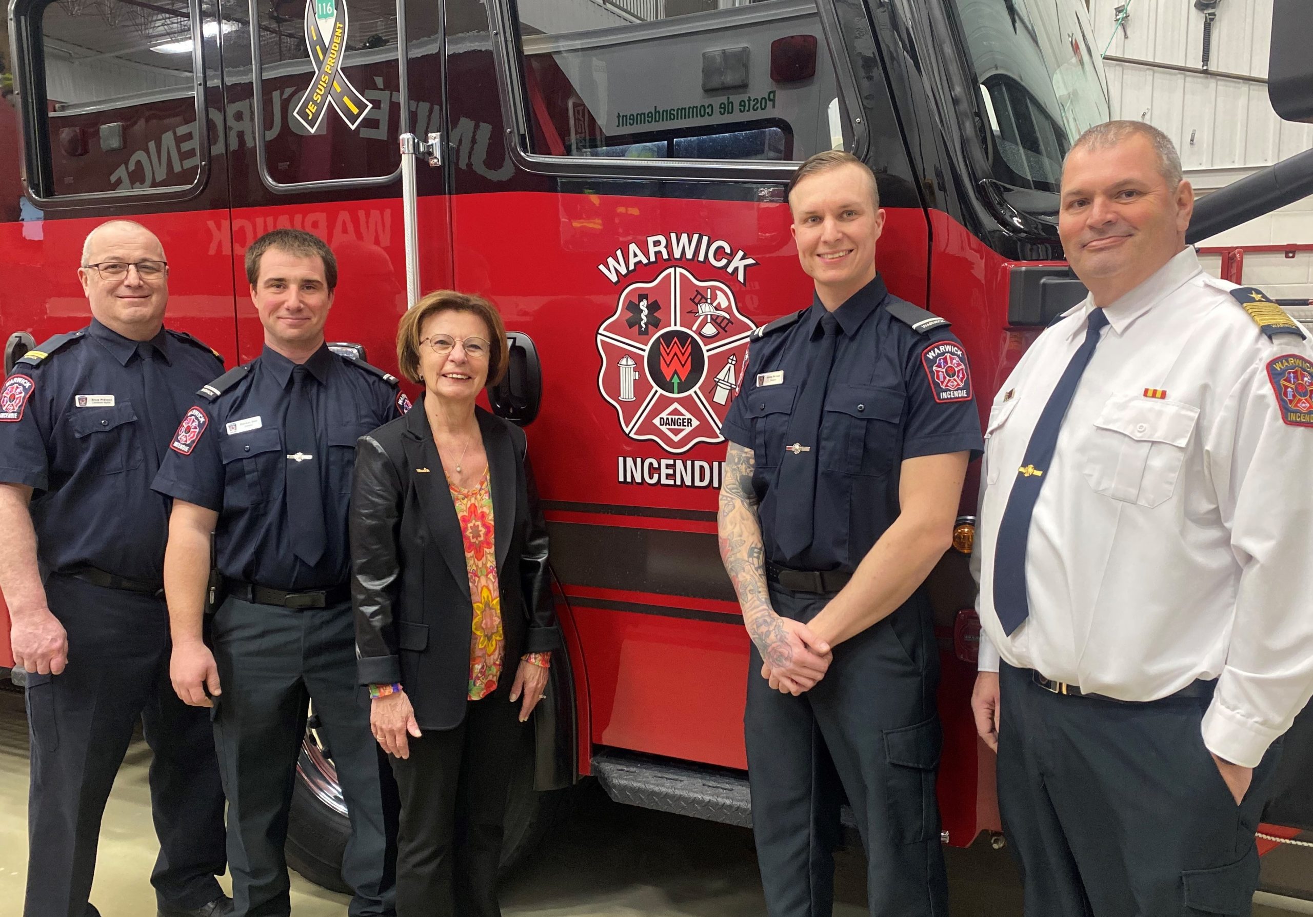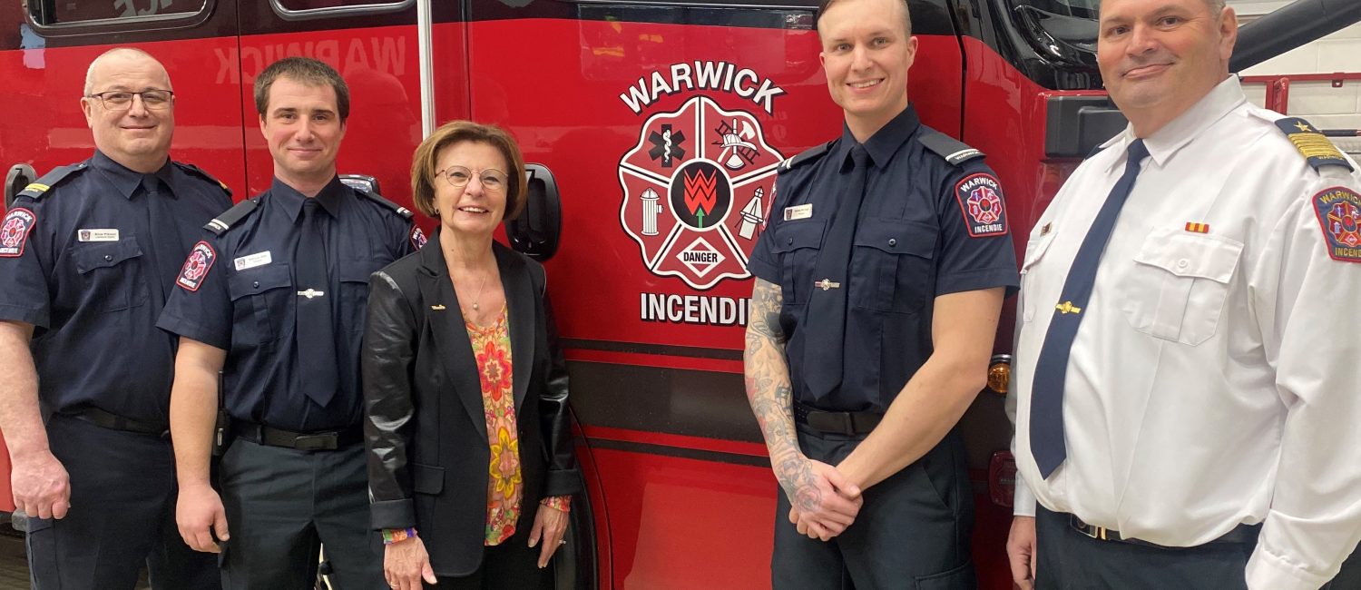 « C’est une grande fierté d’avoir, à Warwick, une brigade incendie avec un potentiel de ce niveau! Nous avons d’un côté des pompiers qui s’investissent et se perfectionnent depuis des années et d’un autre côté une relève pleine d’ambition! » a déclaré la mairesse suppléante, Noëlla Comtois, alors que la Ville a récemment annoncé la nomination d’Érick Prévost au grade de lieutenant, ainsi que la promotion des pompiers Pier-Luc Dion et Anthony Michaud au grade de lieutenant éligible.