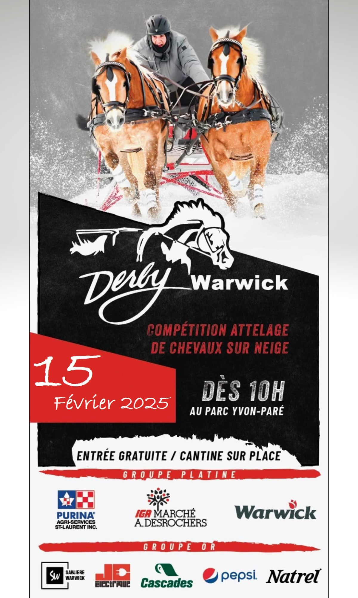 Le coordonnateur du Derby Warwick, Mathieu Desrochers, se réjouit de cette collaboration. « En unissant nos forces, on va faire rayonner davantage notre discipline et attirer un public plus large. On a hâte de partager notre passion avec encore plus de gens! », a-t-il lancé. De son côté, la coordonnatrice aux loisirs, Jenifer Brière-Gauthier, rappelle que l’accès à l’événement est entièrement gratuit. « Nous tenons à ce que toutes les familles puissent profiter pleinement de cette fête hivernale. Nous avons préparé une programmation avec des activités pour tous les goûts et tous les âges! Il y aura des jeux gonflables, une fermette, des promenades en camion incendie et même un spectacle de magie à 11 heures! », a-t-elle précisé.