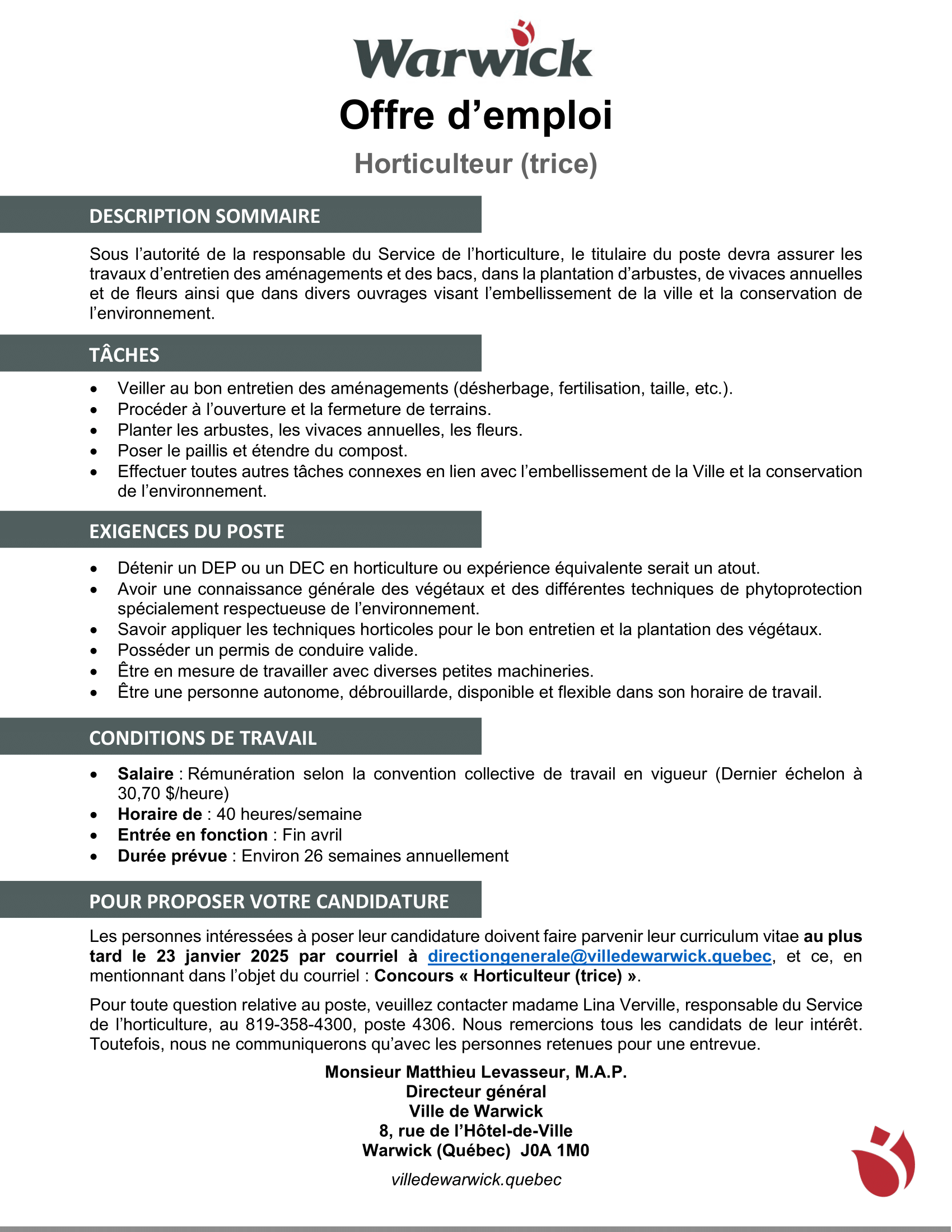 Courriel : reception@villedewarwick.quebec
